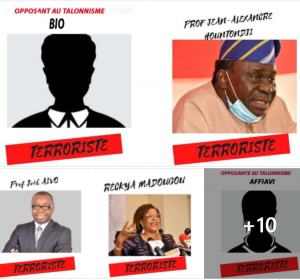 L’invention des TERRORITES est née de la volonté manifeste du TALONNISME AUTORITAIRE de fuir une 3e fois LE DÉBAT DÉMOCRATIQUE AU SUJET DE SON BILAN DANS LES URNES. IL a préféré s’imposer par la force et une brutalité inouïes. En réalité, ceux que le TALONNISME nomme aujourd’hui TERRORISTES sont LES OPPOSANTS qui ont eu le courage de le regarder en face et de lui dire « NON ». CES DERNIERS SONT NOS HÉROS. ILS PORTENT INCONTESTABLEMENT AUJOURD’HUI LE FLAMBEAU DES DÉMOCRATES BÉNINOIS QUI ONT DÉCIDÉ QUE LE BÉNIN NE SOIT PAS LA PROPRIÉTÉ PRIVÉE D’UN CLAN QUI DÉCIDE DE TOUT AU NOM DE TOUS, des privilégiés qui pour un oui ou un non envoient les béninois au gnouf. NOUS DEVONS CÉLÉBRER LA BRAVOURE, LE PATRIOTISME ET LE LEADERSHIP POLITIQUE DE NOS HÉROS CHAQUE JOUR QUE DIEU FAIT. C’est ainsi, qu’à coup sûr, LA LUTTE POUR UN BÉNIN LIBRE ET DÉMOCRATIQUE DANS LEQUEL LA PLACE DES OPPOSANTS POLITIQUES N’EST PAS LA PRISON,TRIOMPHERA.